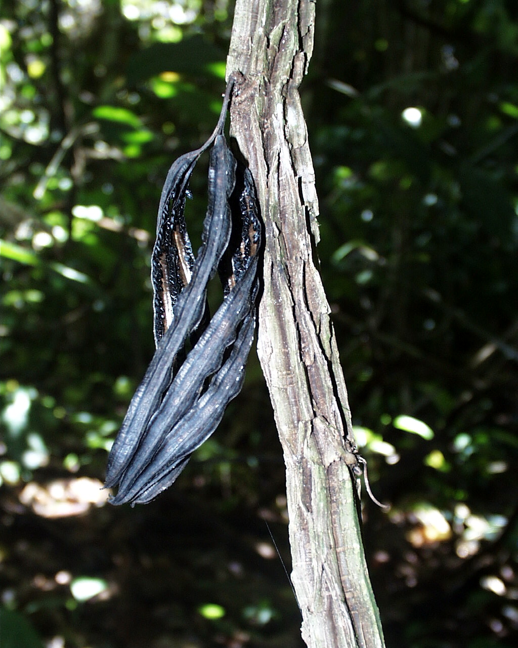 Rare evergreen climbing vine preferring the moderate insolation levels of older secondary, or disturbed primary, forests. Aristolochia remains inconspicuous until it produces the large, showy, lavender flowers that are its hallmark.