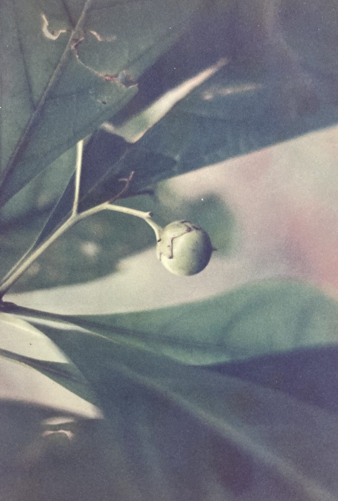 Fruits mature after two months of development, when they finally measure 2 cm in diameter and turn darker in color. Below a thin layer of soft flesh, each contains a solitary, globular seed. Harvests take place annually in October (resulting from the June flowering) and, less consistently, in March (from the November flowering).