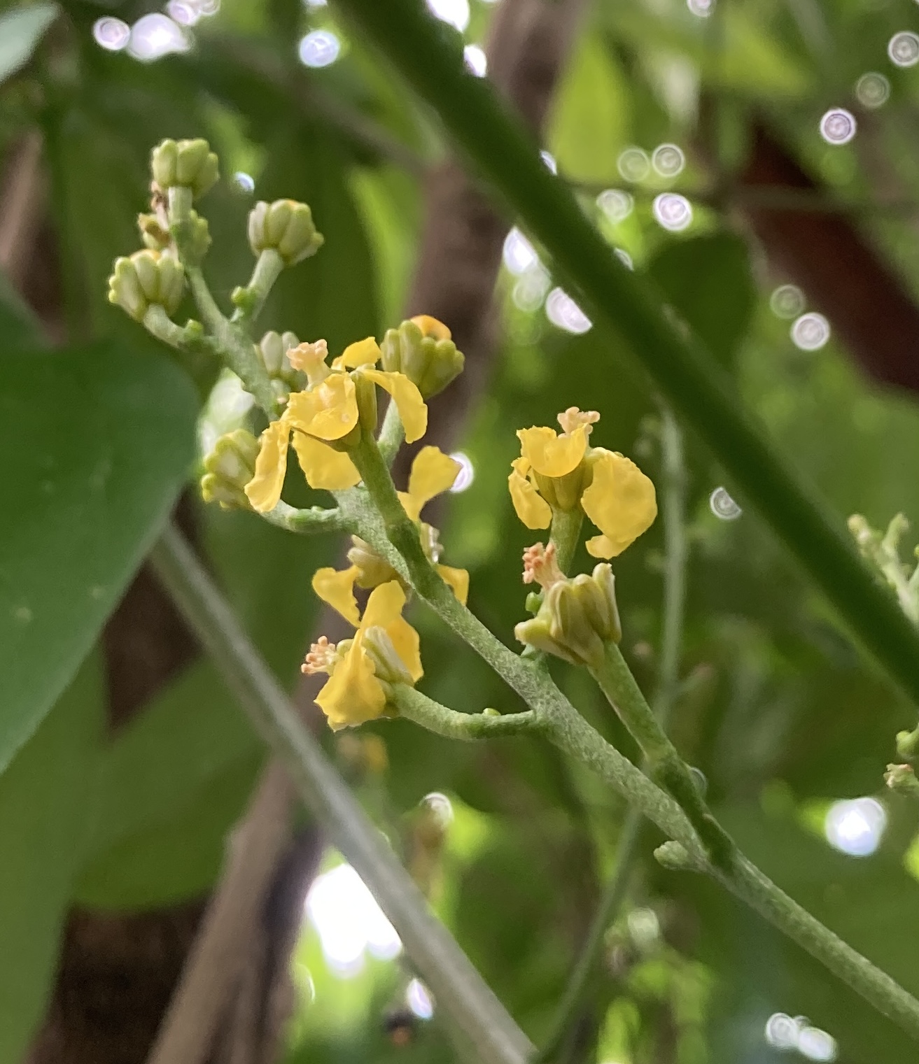 Similar Species: Lophanthera hammelii is a tree of a similar stature, overall form, and leaf and flower arrangement. However, B. cornifolia‘s leaves are curled (Lophanthera‘s are not), and its nearly omnipresent flowers (present during 3/4 of the year) are yellow instead of pink. B. cornifolia also has a narrower crown. The fruits of the two species are not confusable.
