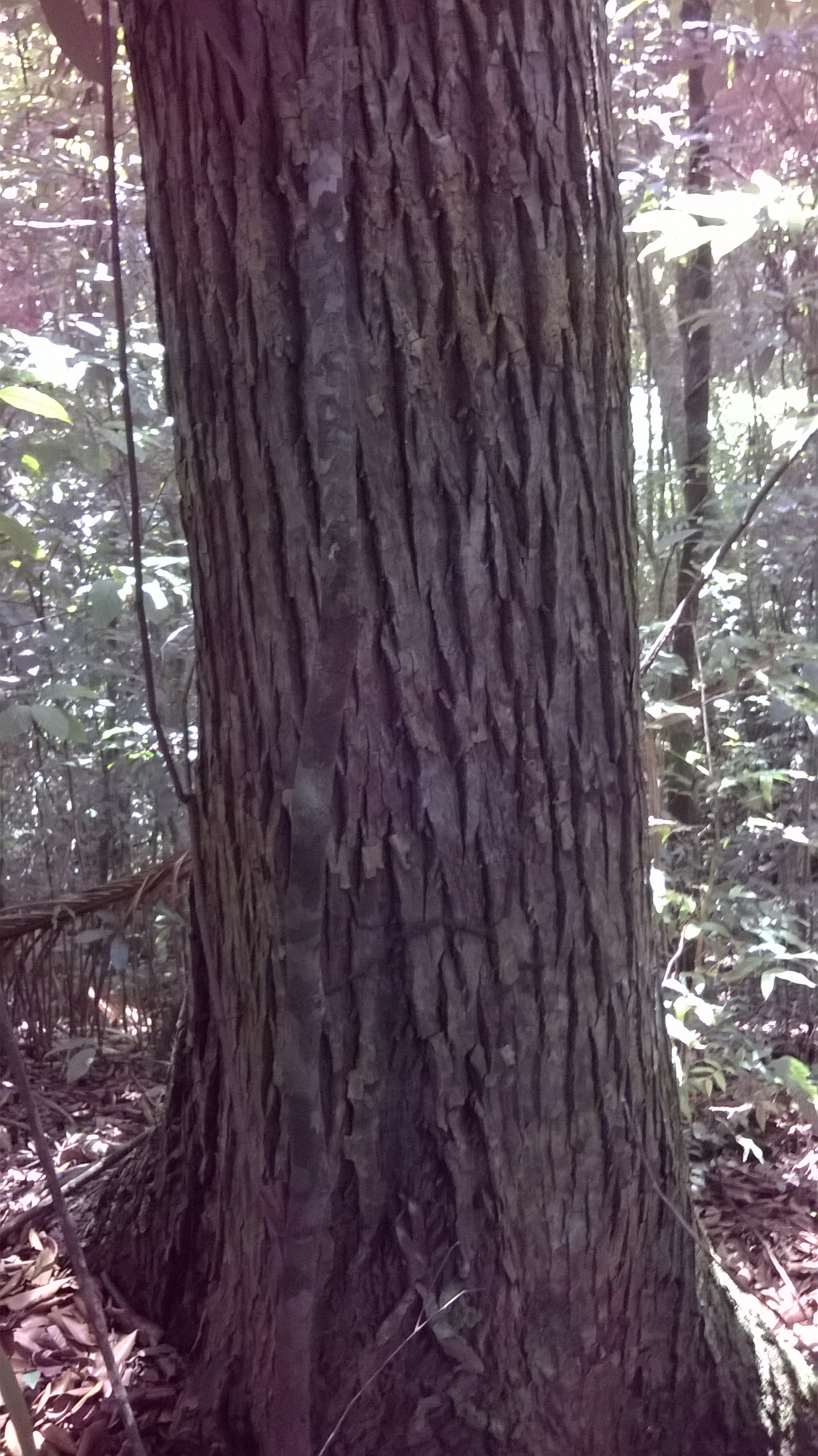 Tree: Abundant evergreen canopy tree (25-30 m) found growing in most habitats present in Manuel Antonio and occasionally forming almost pure stands. With its thick, deeply fissured bark and large, parallel veined leaves, Cedro María is amply distinguished from the rest of the park’s arboreal flora. This species is widely appreciated for its fine quality, orange wood.