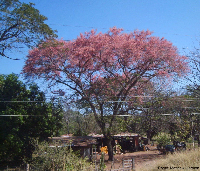 Tree: Rare deciduous subcanopy tree (15-25 m) notable for its striking, pastel-colored flowers as well as its persistent, strong-smelling, and cylindrical woody pods. This tree has been widely planted as an ornamental in Costa Rica, thanks to its showy, pastel-colored flowers. Nevertheless, I have never seen it growing in the wild in the dry and humid forests of Costa Rica’s Pacific Slope.