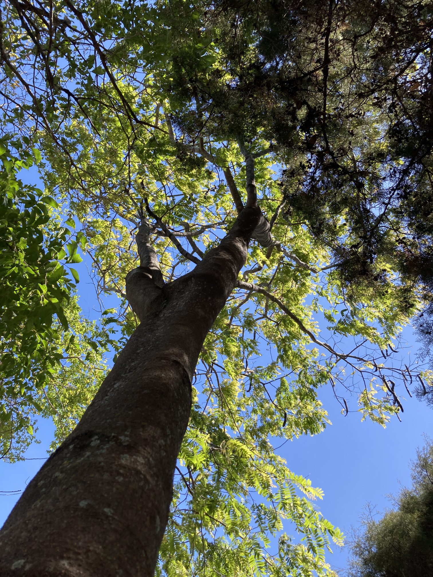 Description: Carao’s trunk is usually straight and more or less cylindrical, with large trees having diameters approaching 60 cm. Branching is profuse and a dense, umbrella-shaped canopy is produced by them. Smooth pale gray bark, sometimes marked by inconspicuous encircling rings, is typical of the species. Carao leaves are paripinnately compound, alternate, and large (30 cm by 10 cm), each with about 16 pairs of leaflets. Narrowly elliptical in form, the leaflets (4 cm by 1.5 cm) sport some pubescence as well as a distinctive, two-toned coloration: they are green above and maroon below. Foliage begins to fall from the trees early in the dry season (January), leaving them completely bare by March. The generation of new foliage resumes in April.