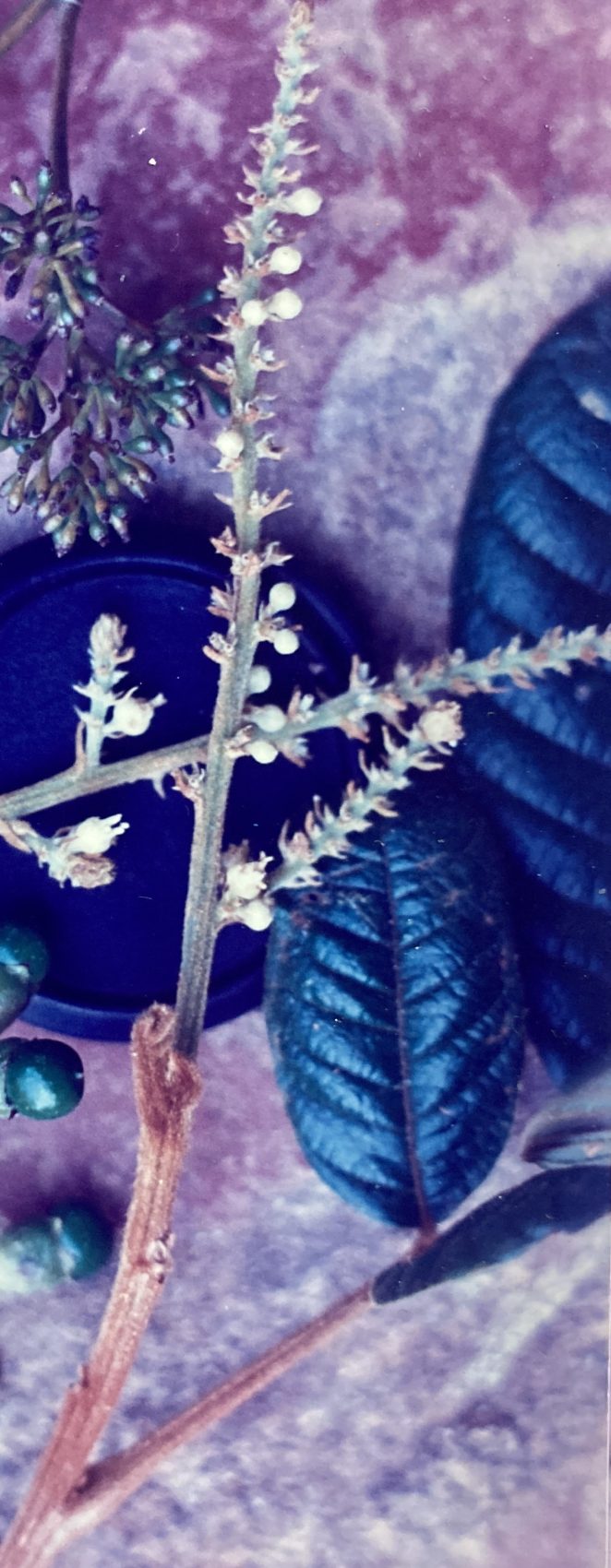 Flowers grow from leaf axils on long (15 cm), woody panicles – structures that are also covered with reddish brown hairs. Nearly sessile, the creme colored, pentamerous, globular (4 mm) blossoms contain small sepals that adhere closely to the slightly larger petals. The corolla forms a small tube from which protrude a set of yellow-anthered stamens and a shorter, central pistil. Cupania trees flower annually, maintaining a low but constant level of activity for an extended period of time. Flowers may be observed from late January to early April.