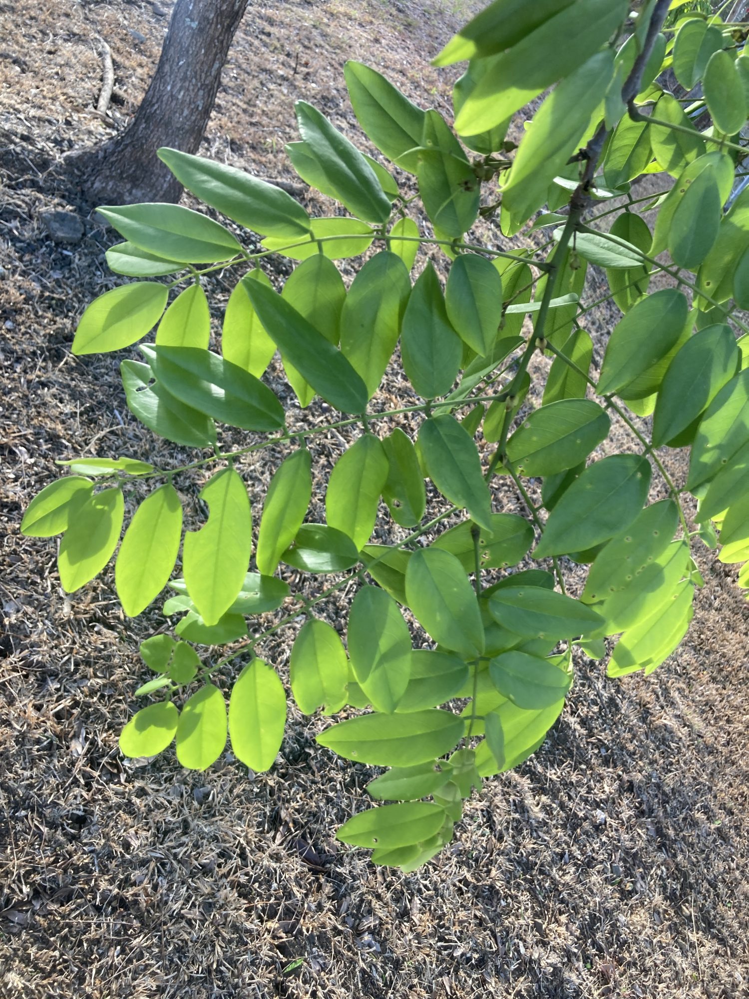 Similar Species: Cocobolos shortish stature, irregular crowns, widely rounded oval leaflets, and persistent, papery seed pods are telltale hallmarks of this species and make it difficult to confuse with other trees in its habitat. A possible exception to this could be Platymiscium pinnatum (Cristobal) and trees of the Lonchocarpus genus that have similar, persistent flat seed pods and imparipinnate leaves. These latter species sport yellow and lavender flowers, respectively, and have larger and less-rounded leaflets.