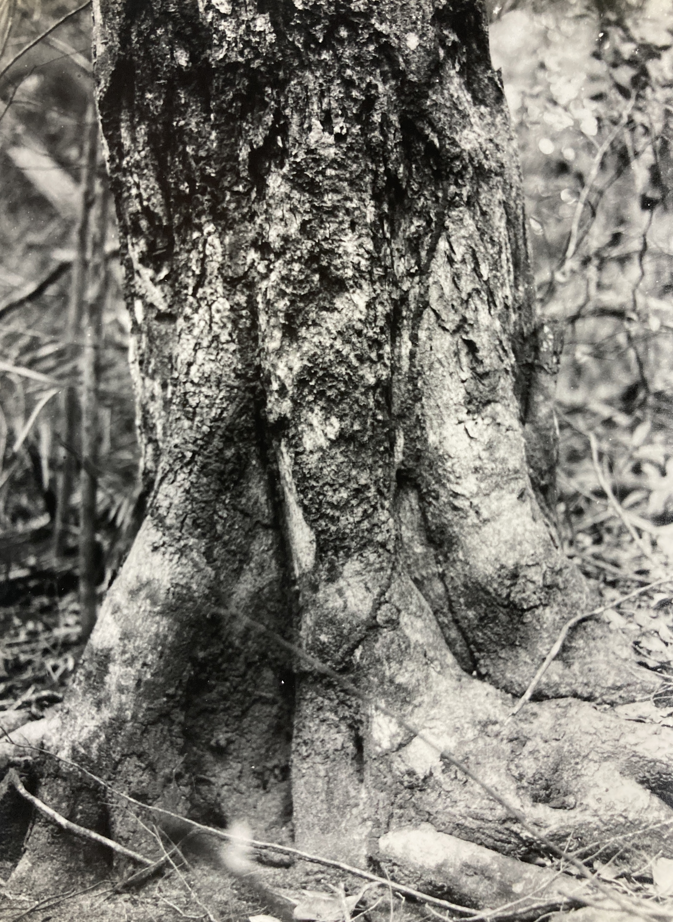 Description: Asolillo presents a very irregular, bending, twisted and often inclined trunk. Never cylindrical, its surface is molded by undulating folds that extend along its entire length to the crown. Nevertheless, Asolillo grows to be a large tree, with trunk diameters of 1 full meter or more. The thick, pale tan bark that covers its surface is roughly textured by vertical fissures and exfoliating plates with jagged edges. Buttresses are largely absent. The main bole frequently divides into secondary trunks at a relatively low level. Upon reaching the canopy, these further subdivide into many thin, long, flexible and drooping branches. The crown thus produced is thick, flowing, and willow-like. Leaves (9 cm by 2.5 cm) are smooth, simple and alternately arranged, occurring in two tiers along the twigs. each blade is narrowly elliptical in shape, tapering to a pointed drip tip and supported by an 8 mm petiole. Often the blade shows a marked asymmetry and curvature, with the mid-rib skewed to one side of the leaf’s central axis. New foliage and twig growth is seen in the crowns from December through February.