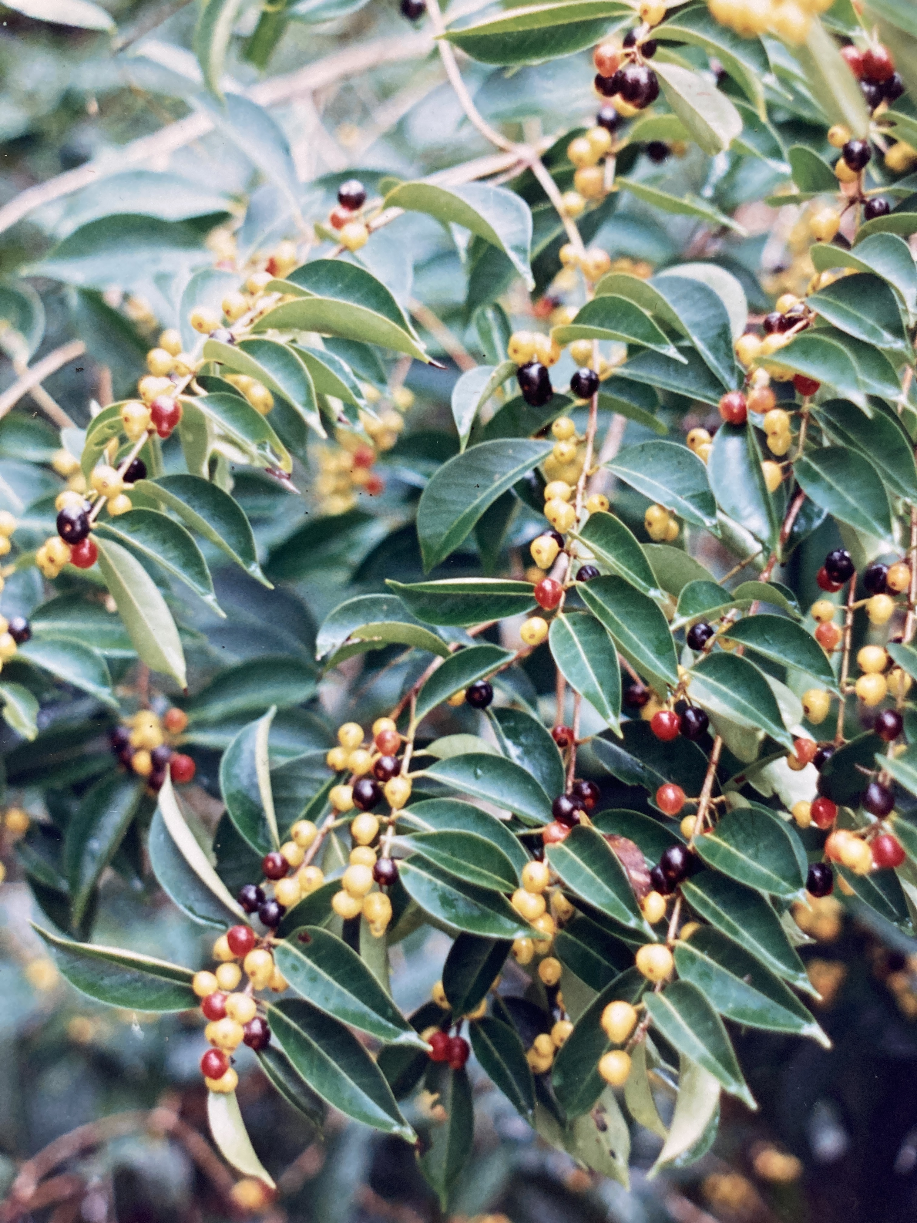Common, evergreen, understory (10-15 m) tree found most abundantly along the sandy, vegetated fringe of the immediate coastline. Murta is notable for its prominence in Manuel Antonio, for its importance to the regions wildlife, for its densely packed and pungent-smelling flowers, and for its gaily colored, edible fruits.