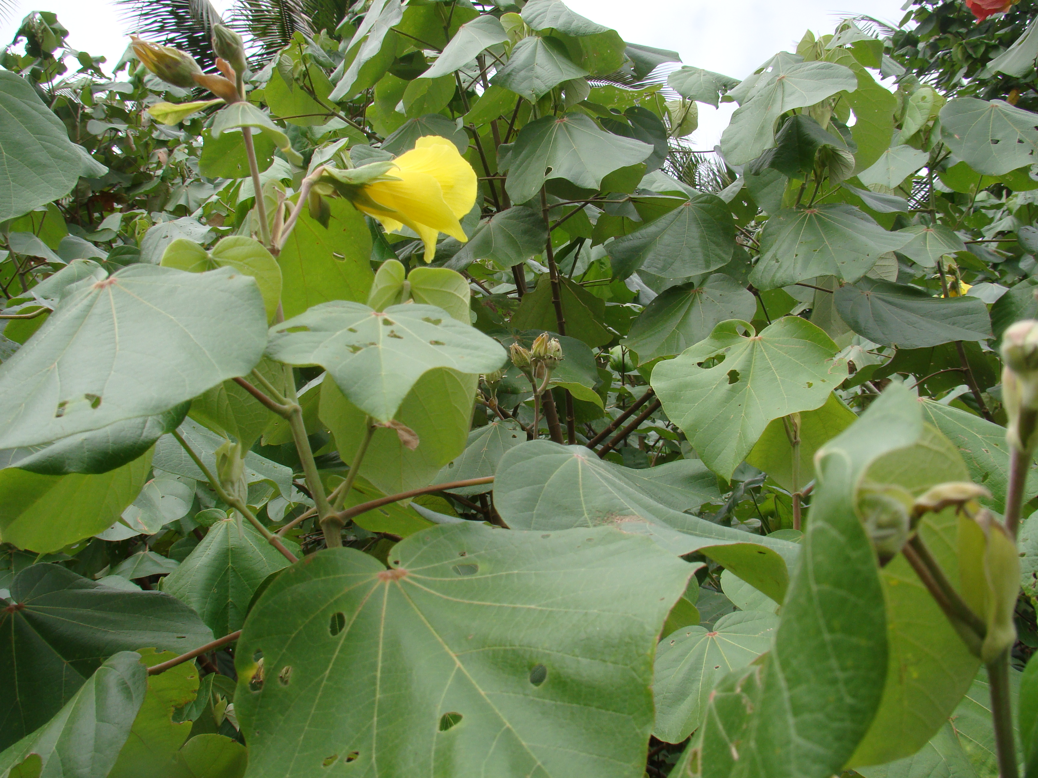 Occasional evergreen treelet or shrub (2-6 m) found growing exclusively along the vegetated fringes of sandy beaches. These easily recognizable plants have heart-shaped leaves and showy yellow flowers. They often represent the front lines in the vegetative struggle to exploit the sunny but otherwise severe conditions of the salty, coastal zone.
