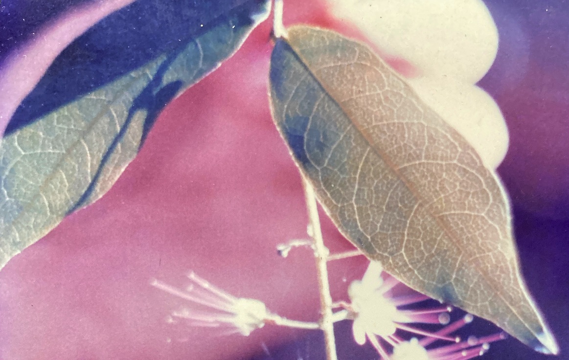 Leaves (8 cm by 2.5 cm) are simple, alternately arranged and very nearly sessile. They are elliptical in shape, possessing slowly-tapering, well-developed drip tips and short petioles (2 mm). The blades themselves are smooth and finely textured with secondary veins, however their mid-ribs sport a thin pubescence (as do the young twigs). New growth occurs at different times during the year but mainly in the months of September and October.