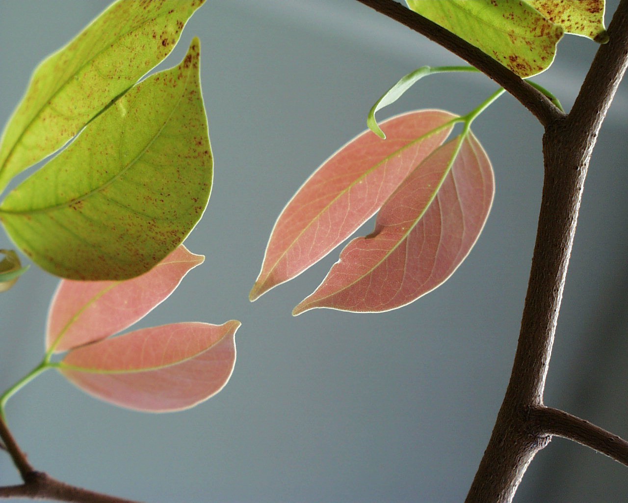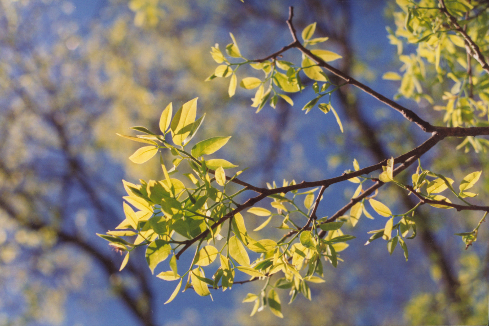 Guapinol’s trademark leaves (11 cm by 10 cm) are pinnately compound, alternate, and composed of two, paired asymmetrical leaflets on a 1.5 cm petiole. Very thick, smooth and waxy, they have the feel of stiff leather. Each leaflet in the pair – one the mirror image of the other – is basically elliptical in shape, though slightly falcate (each curving toward the other) and ending in a blunt point. Leaves slowly begin to senesce, yellow, and fall in September and by the end of October, the trees are generally bare. In November, as large, fleshy stipules are shed, a growth spurt culminates in the establishment of a fresh, light-green and thick leaf cover.