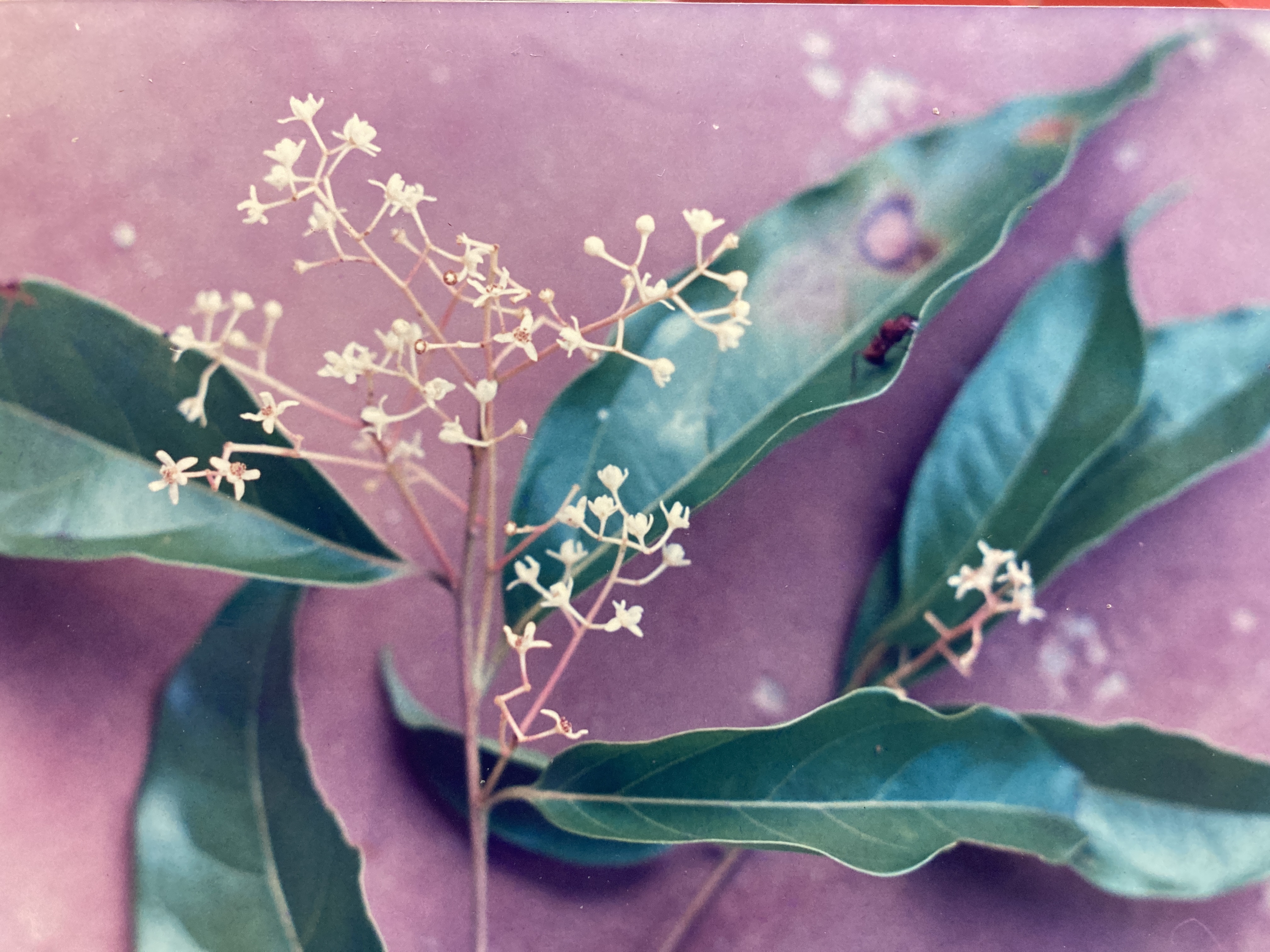 Description: Quizarra Amarillo trunks are generally slight: only rarely do they exceed 20 cm in diameter. Circular in cross-section, they are not usually straight, with trees frequently bending as they rise through the forest understory. Larger trees show some development of low, straight and thin, ebony-colored buttresses. The bark is smooth, and light brown. Quizarra branches are restricted to very top of the bole, and a small, flat-topped, but thick crown is produced by them. Leaves (14 by 4.5 cm) are simple, alternately arranged, and smooth, with a papery texture. Each narrowly elliptical (spear-head shaped), glossy leaf tapers to a well developed drip-tip (2 cm) distally and a short petiole (0.5 cm) proximally. Often, the petioles and main leaf veins sport a reddish hue. New foliage – translucent, pink and limp – emerges from the branch tips. In some individuals, these new leaves possess a striking scarlet-red hue, contrasting favorably with the duller greens and browns of the forest. Most growth occurs in January and February, but new leaves may be seen sporadically throughout the year.