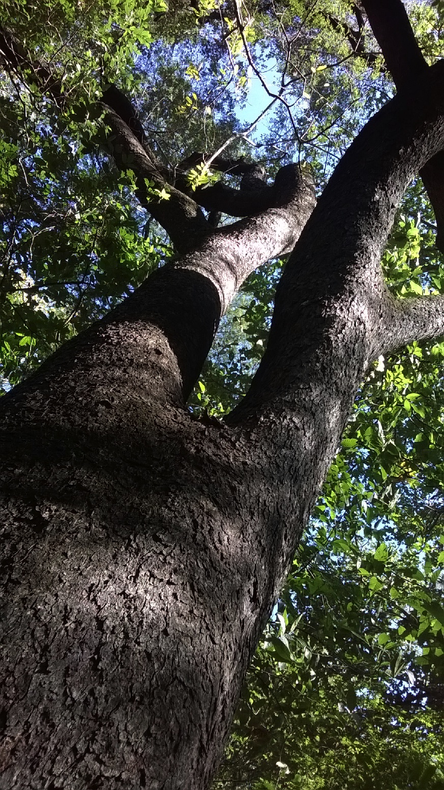 Description: Cenizaro has a cylindrical but short and stout main trunk (>1m) that usually divides into secondary boles only a few meters above the ground. Angling away from the vertical, these rafter-like boles extend outward and upward for many meters, forming the framework for an extremely wide and spacious, hemispherical crown. Large individuals of this species appear to defy gravity as their hefty, often horizontal limbs amble away from the main trunk for unreasonably long distances. Foliage is confined to the outermost fringes of the twigs and the shell-like crown is therefore open, airy and thin. Cenizaro bark is gray-brown, characteristically rough, and deeply fissured by vertical cracking. Exfoliation occurs in stubby, irregular plates. Buttresses are absent.