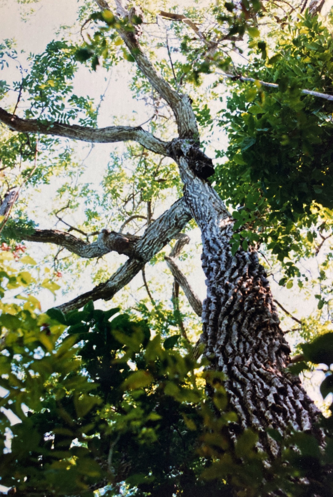 Description: Jobo has a straight, cylindrical trunk with relatively few, thick limbs forming a wide, spreading crown of moderate density. The tree’s bark is light gray, thick, rough, and marked with deep vertical fissures. Older specimens (with diameters greater than one meter) show some exfoliation of rounded bark plates on their lower boles, leaving behind shallow, round depressions. Leaves are imparipinnately compound, alternate and tend to be clustered near the ends of the thick, stubby twigs. They are also large (about 40 cm long by 20 cm wide) and they carry from 11 to 17 leaflets. Jobo leaflets themselves (12 cm by 3.5 cm) are narrow and somewhat curved. All foliage is shed during the early dry season, with leaf yellowing and senescence beginning in late November. Falling slowly at first, leaf-loss accelerates in late December and January. Leaf buds and young shoots begin to appear soon thereafter (late January and February ) but grow slowly – or remain stagnant – until after flowering is completed late April.