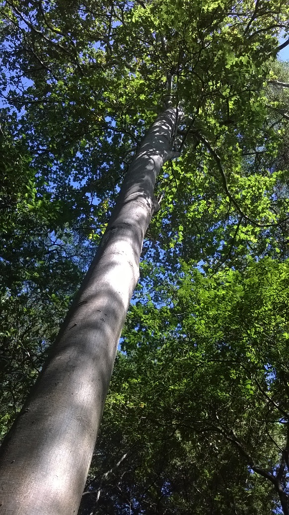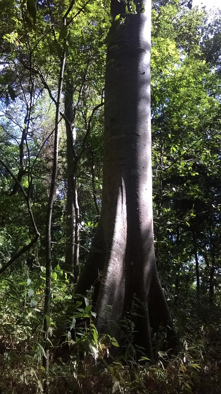 Description: Panama has a cylindrical and straight – truly columnar – trunk (measuring 1 m or more in diameter) whose base is fortified by thick, tall (1.5 m) buttresses. Clad in grayish – or even slightly pink – bark, the bole’s surface is smooth and intact, with no signs of scaring or exfoliation. Massive limbs, restricted to the upper fifth of large trees, extend laterally for many meters, creating a very broad, rounded canopy. The divergence and subdivision of these great limbs into smaller branches is limited, reducing the number of twigs and giving the tree a relatively open and well-lit crown.