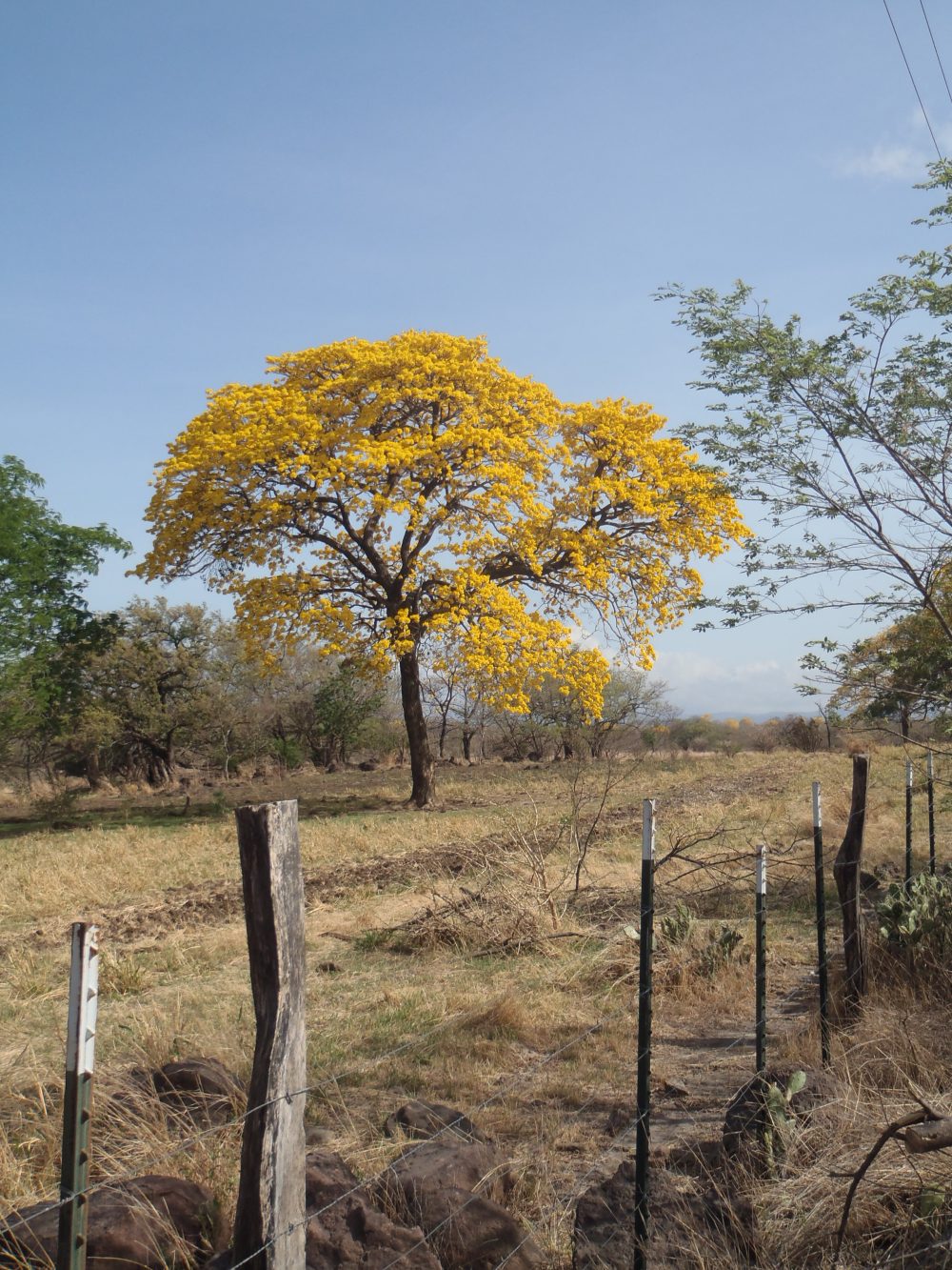 Tree: Occasional deciduous sub-canopy or canopy tree (20-30m) found most commonly in drier tropical forest habitats like those of Costa Rica’s Guanacaste provice. Like its close relative Roble de Sabana (Tabebuia rosea), Corteza is best known for its brilliant displays of showy flowers that take place late in the dry season. Unlike Roble de Sabana, Corteza sports bright yellow blossoms (instead of pink) and boasts a much more ephemeral floral display.