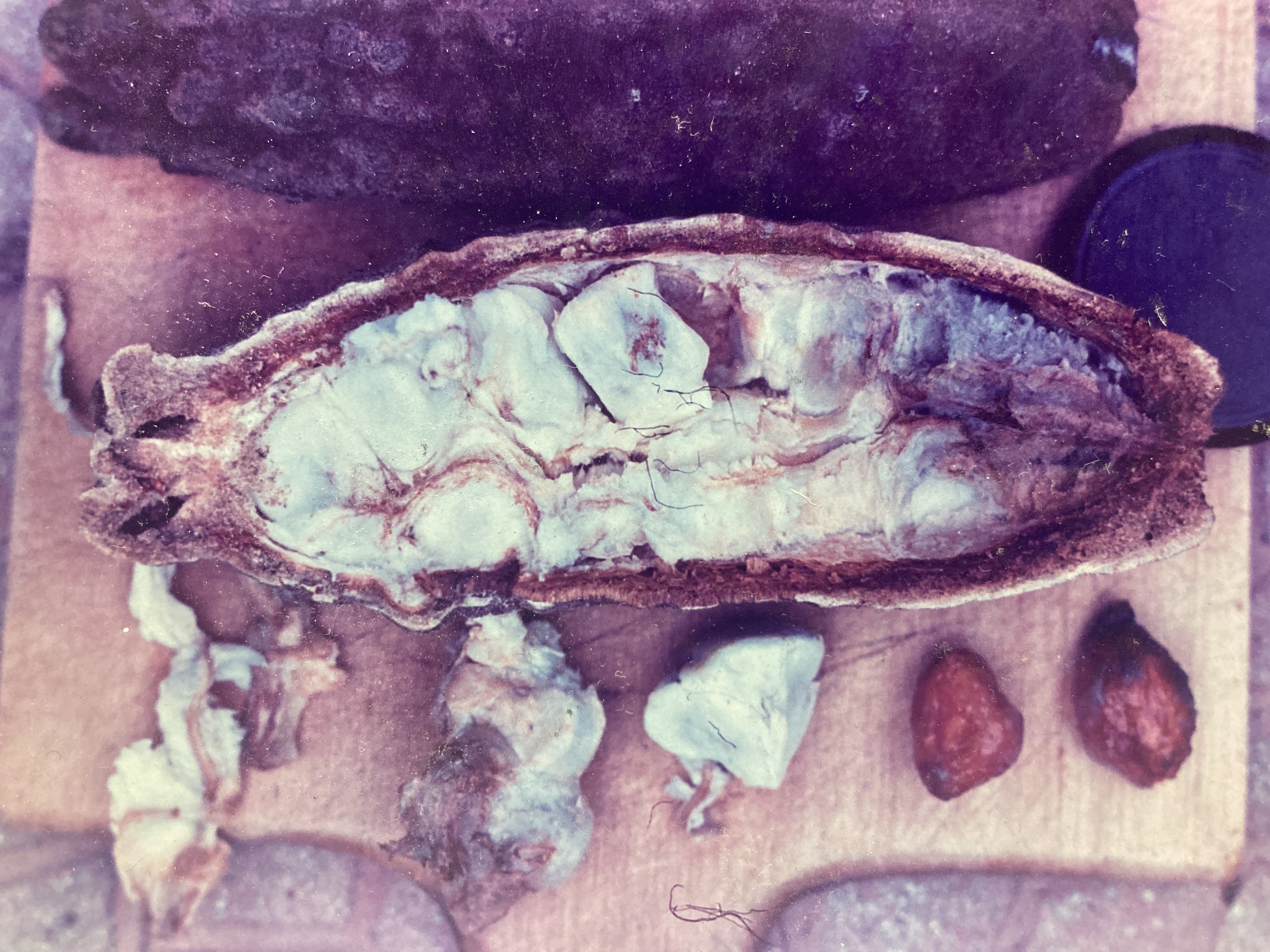 Natural History: Fruits are harvested by a heretofore unseen arboreal mammal (pizote, raccoon, and/or monkey). The pods are usually sited – still hanging in the trees – but chewed open and with some of their contents strewn, in slimy gobs, over the nearby forest floor. The sweet pulp is undoubtedly a much sought-after source of food – once ripe, no pod remains unopened for very long.