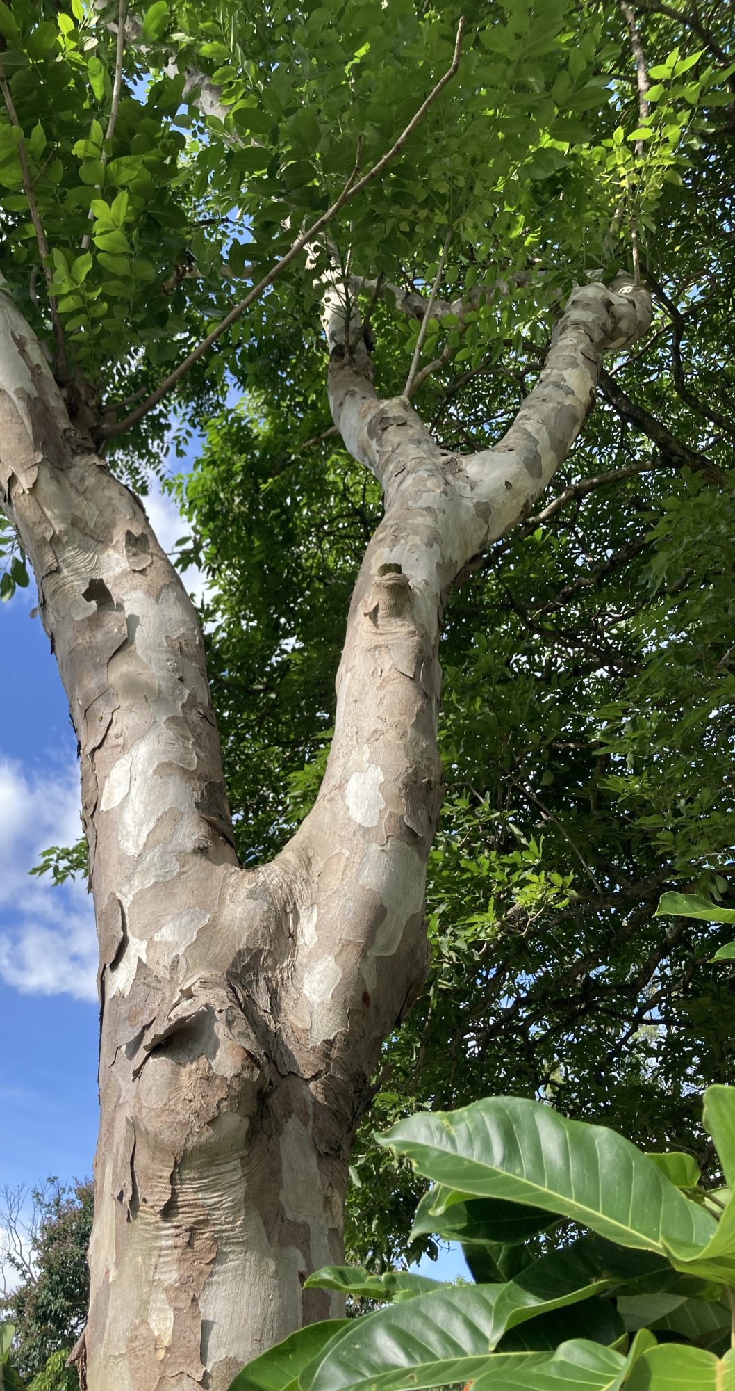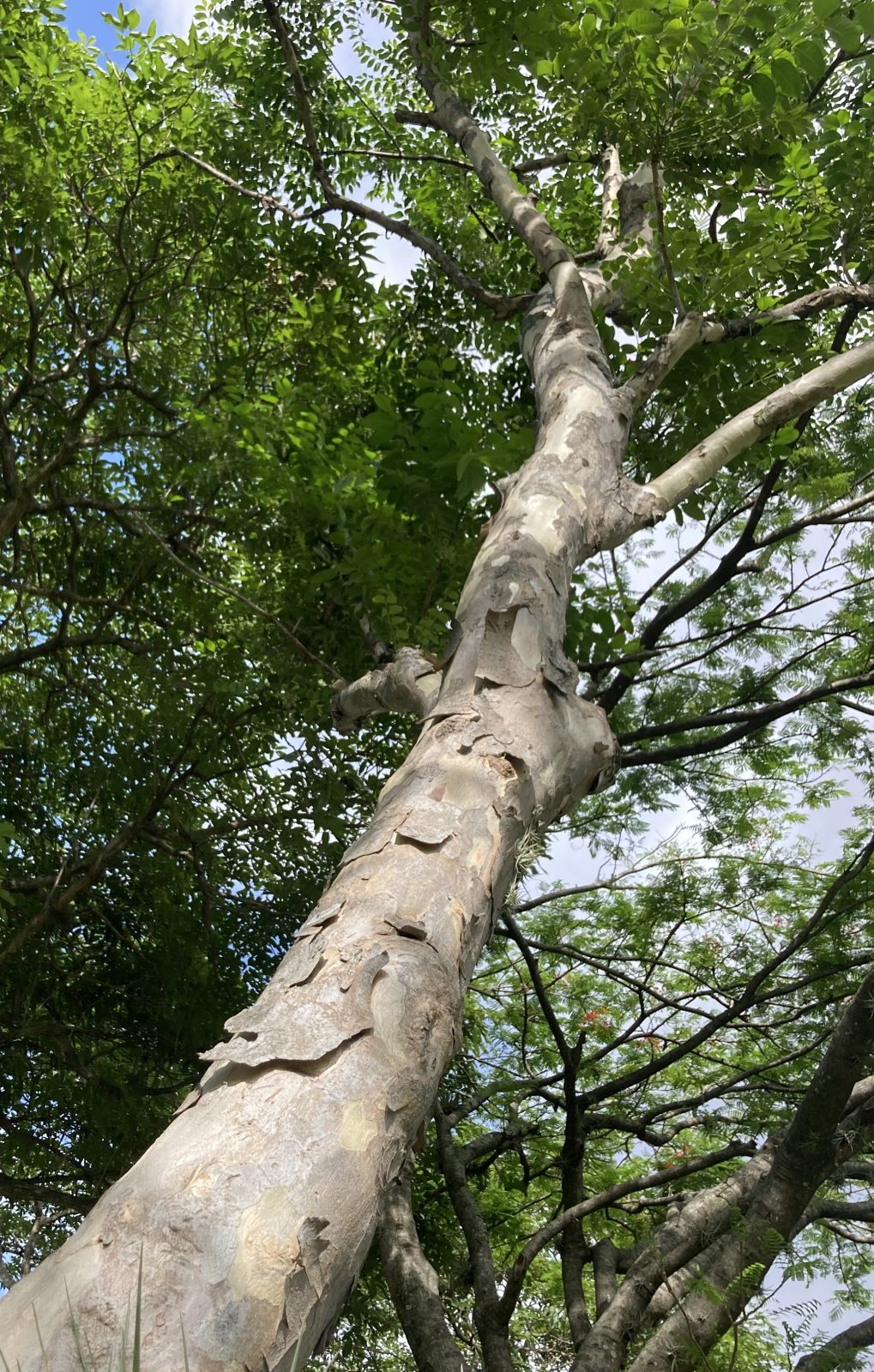Description: Trichilia americana has a bending, but mostly cylindrical trunk (35-40cm). The bark is tan-brown in color and it exfoliates in large, thick, irregular plates. Underneath, the newer bark is pale yellow, giving the bole a mottled and shaggy appearance.