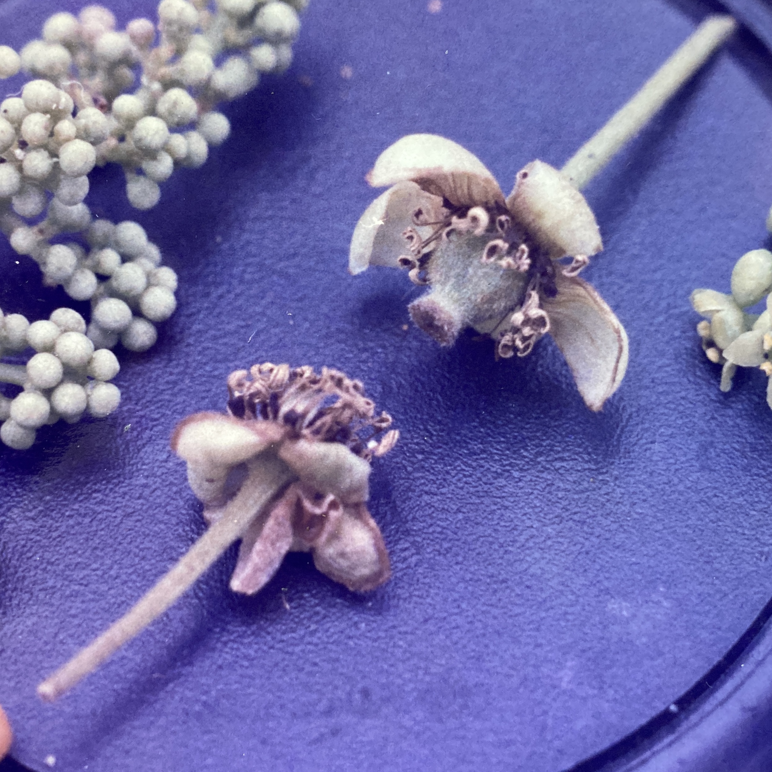 Seeds of Plomillo fruits are dispersed mainly by small birds (e.g. Red-legged Honeycreepers). They fly up and under the vertically hanging, open fruits, pluck the ariled seeds, and deposit them elsewhere – after having digesting the nutritious arils.